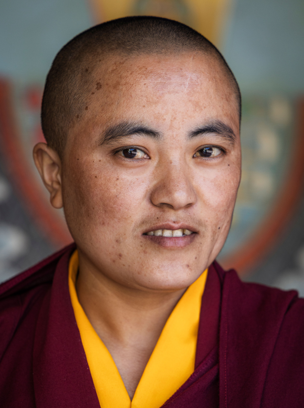 Ani Jangchub Dolma is from Solukhumbu, Nepal, a Sherpa district in the Himalayas and is one of six siblings in a family that farms potatoes, corn and barley. The family had some difficulties and sickness prevented her from continuing with school. She remained sick a lot with an ailment like epilepsy, but would help her mother when she was well enough. Ani Jangchub Dolma has now been able to have western medicine and is being helped by a hospital that is near Tek Chok Ling. She says she still gets sick sometimes but is a lot better than when she was home. She likes drawing and is an active participant in learning to draw mandalas. She also likes studying English and Tibetan.